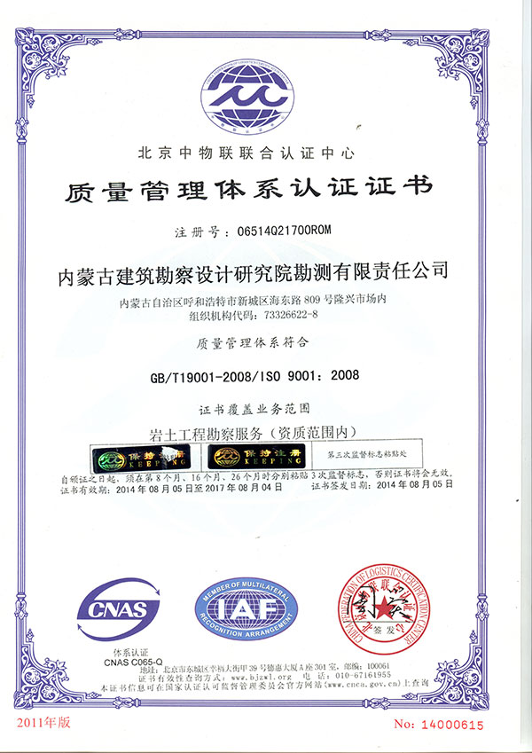 • 內蒙古建筑勘察設計研究院勘測有限責任公司,是全國首家完成 轉企建制的省級建筑勘察設計單位。公司前身為內蒙古建筑勘察 設計研究院勘測分院, 成立于1954年 ,經過六十多年的發展, 現已成為全區技術力量雄厚、專業設置齊全的集巖土工程勘察 、 設計、治理、檢測、監理、咨詢、水文地質勘查、工程測量、科 研為一體的綜合性企業 ... ... [查看詳情]